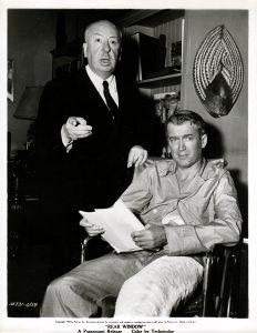James Stewart et Alfred Hitchcock sur le tournage de son film (1954). Épreuve argentique d'époque (25,5x20,5 cm, marges comprises).