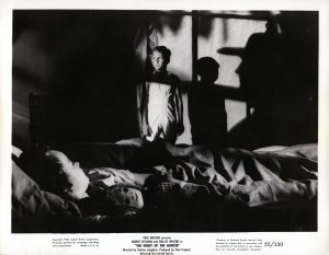 Sally Jane Bruce, Billy Chapin et Robert Mitchum dans le film de Charles Laughton (1955). Épreuve argentique d'époque (20,5x25,5 cm, marges comprises).