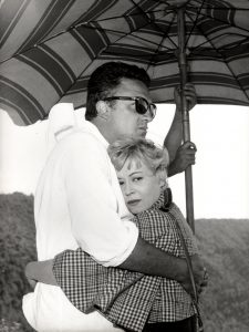 Giulietta Masina et Federico Fellini sur le tournage de son film (1957). Épreuve argentique d'époque (23,5x17,5 cm).