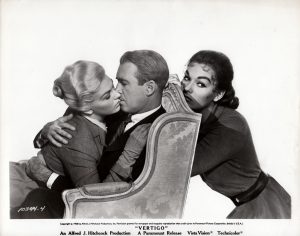Kim Novak et James Stewart pour le film d'Alfred Hitchcock (1958). Épreuve argentique d'époque (20,5x25,5 cm, marges comprises) attribuée à Robert COBURN (1900-1990).