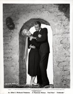 Kim Novak et James Stewart pour le film d'Alfred Hitchcock (1958). Épreuve argentique d'époque (25,5x20,5 cm, marges comprises) attribuée à Robert COBURN (1900-1990).