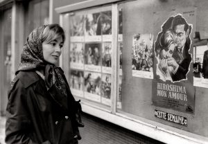 Emmanuelle Riva pour le film d'Alain Resnais (1959). Épreuve argentique d'époque (20x28,5 cm) de Giancarlo BOTTI (1931-2009). Tampon du photographe au dos.