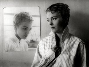 Jean Seberg dans le film de Jean-Luc Godard (1960). Épreuve argentique d'époque (16x21 cm) de Raymond CAUCHETIER (né en 1920).