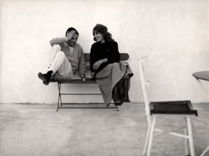 Jeanne Moreau et François Truffaut sur le tournage de son film (1962). Épreuve argentique d'époque (17,5x23,5 cm) de Raymond CAUCHETIER (né en 1920).