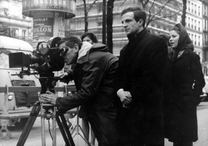 Françoise Dorléac, Raoul Coutard et François Truffaut sur le tournage de son film (1964). Deux épreuves argentiques d'époque (13x18 cm) attribuées à Raymond CAUCHETIER (né en 1920).