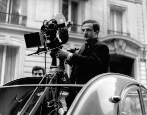 François Truffaut sur le tournage de son film (1964). Épreuve argentique d'époque sur papier cartoline (24x30,5 cm) attribuée à Raymond CAUCHETIER (né en 1920).