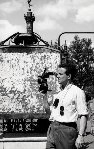 Louis Malle sur le tournage de son film (1960). Épreuve argentique d'époque (24,5x15,5 cm) de Jean-Philippe CHARBONNIER (1921-2004). Tampons du photographe et de l'agence Willy Bern au dos.
