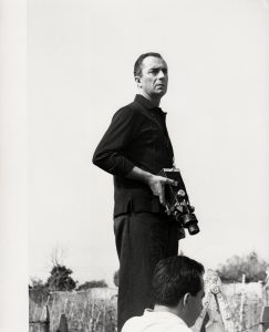 Michelangelo Antonioni sur le tournage de son film (1960). Épreuve argentique d'époque sur papier cartoline (30,5x24 cm, marge comprise) de Patrick MORIN (1928-2002).