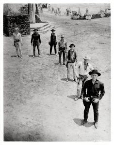 Yul Brynner, Steve McQueen, Horst Buchholz, Charles Bronson, Robert Vaughn, Brad Dexter et James Coburn dans le film de John Sturges (1960). Épreuve argentique d'époque (25,5x20,5 cm, marges comprises).
