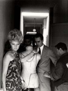 Monica Vitti et Michelangelo Antonioni sur le tournage de son film (1962). Épreuve argentique d'époque (24x18 cm). Tampons des agences Tele Foto et P.I.P. au dos.