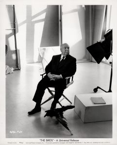 Alfred Hitchcock pour son film (1963). Épreuve argentique d'époque (25,5x20,5 cm, marges comprises) attribuée à John ENGSTEAD (1909-1983).