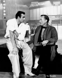 Sean Connery et Ian Fleming sur le tournage du film de Terence Young (1963). Épreuve argentique d'époque (23,5x19 cm) de Ray HEARNE. Mention du photographe au dos.