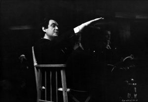 Stanley Kubrick sur le tournage de son film (1964). Épreuve argentique d'époque (17x24 cm) de Dmitri KASTERINE (né en 1932). Tampons du photographe et de la production au dos.