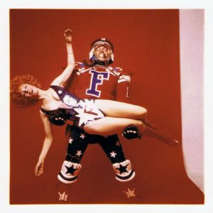Delphine Seyrig et John Abbey pour le film de William Klein (1969). Deux épreuves argentiques d'époque (9x9 cm, marges comprises).