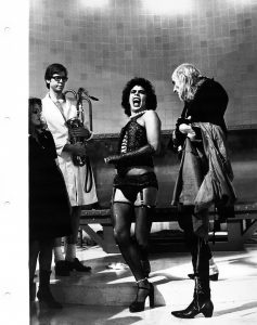 Tim Curry, Susan Sarandon, Barry Bostwick, Peter Hinwood, Meat Loaf, Richard O'Brien et Patricia Quinn dans le film de Jim Sharman (1975). Onze épreuves argentiques d'époque sur papier cartoline (30x37,5 cm, marge comprise) attribuées à John JAY (1920-2005).