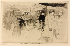 Edgar Chahine (1874 - 1947) Manege De Chevaux De Bois. 1901 (T. 75) 25,7 x 41,2 cm Pointe sèche, lavis d’eau - forte. Très belle épreuve de l’état définitif, signée en bas à gauche. Rare. Légèrement jaunie, bonnes marges.