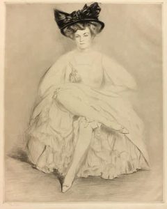 Edgar Chahine (1874 - 1947) Lily Arena Assise. 1907 (T. 242) 54,5 x 43,7 cm Pointe sèche sur Japon. Superbe épreuve d’un tirage à 90 exemplaires. Infimes taches dans les bonnes marges. Très légers plis ondulés. Feuillet : 58 x 49 cm