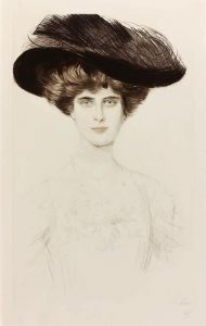 Paul - César Helleu (1859 - 1927) Elegante Au CHAPEAu 56 x 34,8 cm Pointe sèche en couleurs. Superbe épreuve sur vélin signée, numérotée 47. Bonnes marges.