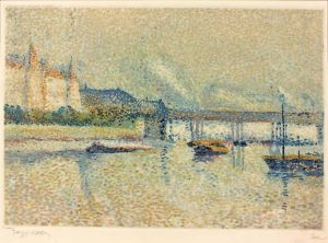 Jacques Villon (1875 - 1963) Londres. 1929, d’après Maximillien Luce. (C. de Ginestet et C.Pouillon E 663) 36 x 51,3 cm Aquatinte en couleurs. Très belle épreuve (ayant été lavée) sans doute doublée, signée par Luce et Villon, numérotée