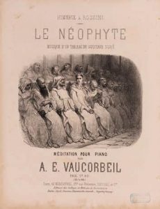 Gustave Dore (1832 - 1883) La Potence musique et paroles d’ Emile Guimet, Paris Flaxland éditeur. Le Neophyte, méditation pour piano par A.E. Vaucorbeil, Au Ménestrel éditeur. Deux illustrations pour partitions musicales (Le Blanc p. 376). 29 x 20