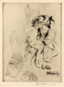 Jacques Villon (1875 - 1963) Les Cent Bibliophiles. 1910 (C. de Ginestet et C.Pouillon E 250) 23,7 x 17,7 cm Pointe sèche.Très belle épreuve de l’ état définitif sur vergé mince, signée. Très légers plis ondulés. Petites marges.