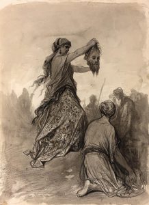 Gustave Dore (Strasbourg 1832 - Paris 1883) Judith et Holopherne Crayon noir et lavis gris, signé en bas à droite. Petit manque en bas à gauche. 46,5 x 33,8 cm