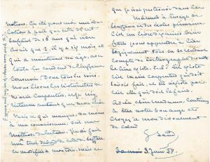 George Sand. L.A.S., [Nohant] 3 juin 1858, à Stéphanie Bourjot ; 3 pages et demie in-8 à son chiffre. [7846] Belle lettre sur l’éducation, en partie inédite, à la fille de geoffroy saint-Hilaire. Elle évoque le livre de Marie pape-carpantier