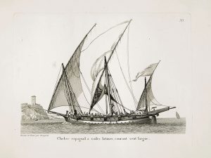 Jean-Jéróme BAUGEAN. Collection de toutes les espèces de bâtiments de guerre et de bâtiments marchands qui naviguent sur l'océan et dans la Méditerranée. Paris, Marie et Bernard, 1852. In-4 à l'italienne, demi-chagrin bleu marine, dos à 5...