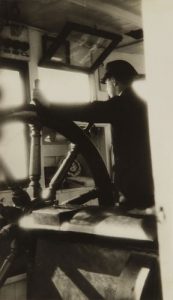 Ilse Bing (1899-1998) Voyage au lac de Constance. Suisse, 1929. Bouées de sauvetage. Capitaine de bateau. Cheminée et mât. Trois épreuves argentiques d’époque, contrecollées sur cartons d’album. 17,5 x 10,2 ; 9,7 x 15,4 et 11,4 x 16,8 cm...