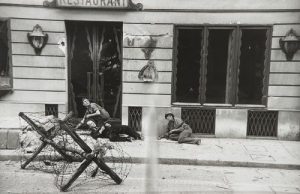 Robert Capa (1913-1954) France. Paris, 25 août 1944. Résistant et soldats français. Épreuve argentique (1964). Tampon “Photograph by/Robert Capa/from “Images of War »/Grossman Plublishers © 1964” au verso. 28 x 35,3 cm avec marges Ce...