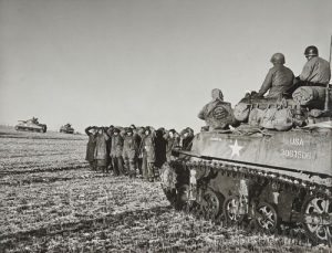Robert Capa (1913-1954) Belgique. Région de Bastogne. 23-26 décembre 1944. Soldats allemands capturés par les forces américaines. Épreuve argentique (1964). Tampon “Photograph By/Robert Capa – Magnum/Magnum Photos Inc./15 West 47th...