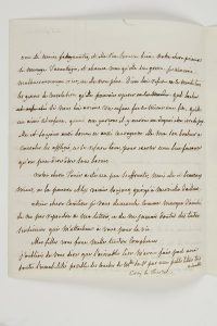 Montpellier ; 2 pages in-4, adresse avec cachet de cire rouge.Félicitations pour l’accouchement de sa fille : « J’ai senti le poids énorme qui pesoit sur votre pauvre cœur ; et l’extrême consolation que vous aviez eprouvée en la sachant sous ce rapport complettement heureuse ; car elle est loin de l’être, éloignée de vous, dans un moment où ses soins vous seroient si doux à recevoir »… Elle est affligée de la savoir toujours aussi souffrante : « Je suis bien sûre que vous trouverez de la consolation dans vos principes, et que celui qui vous afflige ne vous abandonne pas »… Elle est contente de la savoir en bonne compagnie, avec son neveu et Mme Rivière… Sa fille Pauline est un peu moins maigre depuis quelques semaines… « Notre chère princesse [Madame Royale, duchesse d’Angoulême] se ménage davantage, et chacun veut qu’elle soit grosse. Je n’en crois malheureusement rien, ni elle non plus. Dieu lui refuse en ce moment tous les genres de consolation qu’elle pourroit espérer. […] Elle est toujours aussi bonne et courageuse. Elle met son bonheur à consoler les affligés, et se refuse tout, pour exercer une bienfaisance qu’on peut dire sans bornes »… Elle termine en lui donnant des nouvelles de ses autres filles…