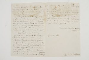Marceline DESBORDES-VALMORE (1786-1859) poétesse.Lettre autographe signée « Marceline Desbordes-Valmore », Paris janvier 1850, à Narcisse de Salvandy ; 2 pages et demie in-8 (mouillure).Belle lettre. « Le bien que vous faites est sans doute...