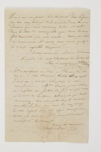 baronne ; 4 pages in-8.« Victor Hugo n’a pu vous oublier, et il a bien su de qui lui venoit le gracieux envoi : pourquoi vous-même douée d’une imagination si active ne cultiveriez vous pas les lettres ? »... Elle évoque les peintres allemands qu’elle a connus à la Villa Massimo, puis revient à Victor Hugo qui « vient encore d’avoir un beau succès au théâtre français : vous pourrez je pense vous procurer sa pièce : Angelo, Tyran de Padoue. C’est fort dramatique et l’ouvrage a passé sans contestation : mais ce qui me semble devoir flatter plus délicieusement son amour propre c’est de penser aux vives simpathies que la lecture de ses ouvrages fait naître au loin »...Librairie Les Autographes, 2006.