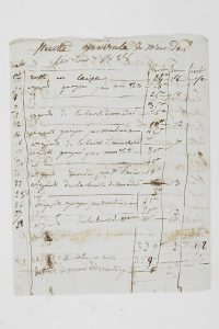 mont-de-piété, gages, « toilette entretien et parfumerie », blanchissage, « faux frais, argent de poche », « maladies et bains », dépense commune, charbon… se montant à un total de 328 livres, 10 sols, 3 liards, soit 329 francs avec les 9 sous restant en caisse.Recette générale du mois de février 1838, tenue presque quotidiennement, dont « argent gagné par mon Toto », « argent de la bourse de mon adoré », « argent gagné par mon bien aimé », etc., et de l’argent rendu par M. Pradier, soit 329 francs, et 2 sous en « déficit à mon désavantage ».