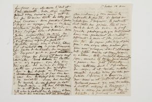 in-8.Très intéressante lettre sur les photographies de la famille Hugo à Jersey.Adèle annonce l’envoi de « portraits de mes fils ; ils sortent de la fabrique d’Auguste [Vacquerie]. Ces portraits sont faits sur papier, tandis que Charles se sert du verre. Les deux procédés photographiques sont également bons, mais produisent des résultats différents. Le verre est plus précis et plus fin, le papier plus large et plus gras. – Vous voyez chère madame que nous nous occupons d’art, et beaucoup. Notre petite maison est transformée en atelier, Toto surtout, le daguerréotypeur, envahi le logis. Nous sortons à peine, un petit jardinet que nous cultivons sert à l’exercice du corps, il est sarclé, ratissé, émondé régulier ainsi que celui que possède l’épicier à la barrière. Mon mari en est contristé et dit mélancoliquement que nous lui enlevons le droit de critiquer le bourgeois »... Ils ne vivent pourtant pas dans la solitude ; des proscrits les fréquentent, et sa fille Adèle attire des galants. Elle raconte la sortie au bal de la jeune Adèle « habillée de blanc comme une hermine »... Elle souffre de « l’avilissement de la France », qui s’enfonce dans la honte... Elle est touchée par l’atmosphère de liberté qui règne à Jersey, « ce petit pays qui se gouverne lui-même »... On leur a fermé l’Espagne, où ils espéraient passer l’hiver. Elle demande à son amie de lui dire ce qui se passe en France. Un dernier conseil : « Faites coller les portraits sur du papier blanc, il faut que la marge soit très grande »...Librairie Les Autographes, 1999.