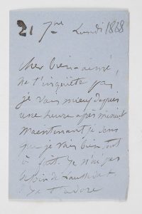Maintenant, je sens que je vais bien tout à fait. Je n’ai pas besoin de Laussedat [médecin]. Je t’adore. »