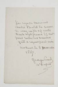 George SAND (1804-1876).Pièce autographe signée « George Sand A. Dupin », Nohant 8 novembre 1867 ; 1 page in-8 à son chiffre.« J’ai reçu de Monsieur André Boutet la somme de cinq mille six cents trente sept francs 25 cent. pour solde...