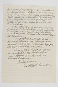 Lou ALBERT-LASARD (1885-1969) peintre, amie de Rainer-Maria Rilke. Lettre autographe signée « Lou Albert-Lasard », Paris 15 janvier 1954, à son ami M. Verspoor à Hilversum ; 2 pages in-fol., enveloppe. Au sujet de son ouvrage Une image de...