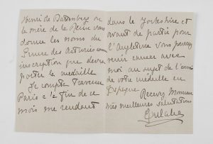 signées « Eulalie », Madrid, Paris et Gréville (Manche) 1906-1908, à l’émailleur Enguerrand, comte du Suau de La Croix ; 16 pages formats divers, enveloppes ou adresses.18 mai 1907. Elle transmet les remerciements de la Reine et « le papier écrit de la main de la Princesse Henri de Battenberg où la mère de la Reine vous donne les noms du Prince des Asturies comme inscription que devra porter la médaille » (document joint)... 23 juillet. Elle transmet la réponse de la duchesse de San Carlos. « Vous pouvez donc envoyer la médaille à la Reine Victoria à San Sebastian »... Noël. Elle le remercie de sa boîte ravissante... Pâques 1908. Il la gâte : « Votre papillon est ravissant »... Etc. On joint une carte de visite autographe à Jeanne de Montigny, 30 mars 1914.Librairie Les Autographes, 2005.