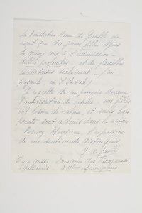fille Anne.« Puisque vous m’entretenez de votre enfant, je vous conseille, lorsqu’elle aura sept ans, de la faire entrer […] dans une maison spécialisée pour les petites filles retardées. Par exemple : les Sœurs de la Présentation avenue Gal Leclerc – Rozay en Brie – Seine et Marne. Il suffit d’avoir la loi Cordonnier, ou même S. Sociale. Cette maison est excellente. La Fondation Anne de Gaulle ne reçoit que des jeunes filles âgées de quinze ans à l’admission – débiles profondes – et de familles nécessiteuses seulement – (ni payante, ni S. Sociale). Je regrette de ne pouvoir donner l’autorisation de visiter – mes filles ont besoin de calme, et seuls leurs parents sont admis dans la maison »…