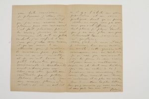 (qqs petites fentes).Lettre pathétique écrite quatre semaines avant sa mort.Il n’y a qu’à elle que l’inimaginable puisse arriver. Mardi matin, quand l’hôtel l’a pour ainsi dire jetée dehors, elle est restée sur le trottoir avec ses paquets et son petit chien, à attendre Mlle de Montcarville, « qui venait pour la dernière fois m’aider car la pauvre petite et ses parents étaient réquisitionnés par la compagnie du gaz de province […], c’est le plus terrible pour moi car dans sa pauvreté elle m’aidait de son moral de sa présence »… Cependant Mlle de Montcarville est arrivée avec un brave type qui l’a emmenée dans une auberge à Champigny. Mais dès leur arrivée, « voilà que l’on vient par commandement prendre cette auberge pour les soldats et en faire un poste de secours. Il fallait donc me mettre dehors pas d’autres endroits où aller ? Tous ces soldats me regardaient comme une bête curieuse. Je pleurais j’étais dans un tel état maladif que j’ai cru mourir sur place puis un revirement s’est fait plusieurs parmi les moins jeunes m’ont reconnue ils ont eu pitié. Surtout, j’ai confié à l’un d’eux que j’étais sans ressources »… On lui a laissé sa petite chambre. « Alors, mon cher gentil ami, vous voyez votre pauvre petite Polaire toute seule dans une maison pleine de soldats. Oh ! ils m’ont dit s’il y a l’alerte on vous préviendra et on vous protégera tant qu’on pourra mais, ne croyez-vous pas mon ami que c’est affreux j’ai tant pleuré je pleure tant que je ne vois plus mes yeux »… Elle voudrait le savoir en sûreté : « cette guerre est sournoise on ne sait rien […] Qui va me sortir de là ? Personne vous connaissez leur cœur. Dieu devrait me laisser m’endormir et ne plus me réveiller »…Librairie Les Autographes, 2005.