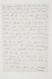 maison est envahie et j’en suis à la fois atterrée et désolée pour toi, je n’y comprend rien car j’ai écris à Marinette pour lui dire que je ne pouvais pas recevoir du monde à la maison et je t’assure que ma lettre était ferme, il va me falloir être encore plus ferme sinon ces gens finiront par nous mettre à la porte de chez nous ! Mon pauvre chéri, toi qui aime tant le calme et qui en as tant besoin, tu ne peux pas savoir comme cela m’affecte »... Elle rentre le 7 à Paris, et atterrit « le midi à Orly (si Dieu le veut) »... Elle est triste de ne pas avoir de ses nouvelles, et a discuté avec Oscar « pour un contrat de six semaines pour toi, tu es adoré ici. [...] Je pense à toi très fort mon petit bonhomme et j’ai hâte de te retrouver. Ta bonne femme qui t’aime, oiseau ».Librairie de l’Abbaye, 2004.