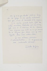 son travail à la Comédie-Française. [Elle enverra sa démission de la Comédie-Française en décembre 1974, pour se consacrer au cinéma.]Elle a assisté avec attention à la conférence de presse de Maurice Escande, et elle s’inquiète du travail qui l’attend lors de la prochaine saison, sous la direction de Robert Hossein, Marcel Maréchal et Michel Vitold, et de devoir enchaîner des répétitions et représentations sans discontinuer toute l’année, dont le trop grand nombre pourrait nuire à la qualité de son interprétation. Elle est certes honorée qu’on lui confie des rôles importants dans des spectacles montés par des personnes qu’elle admire, mais « je ne me sens ni la force ni la disponibilité requises pour assumer comme je veux les personnages qu’on m’offre »... Elle espère qu’Escande n’y verra pas un « caprice de jeune fille » et sollicite sa compréhension pour ne pas l’inclure dans la distribution de La Maison de Bernarda de Lorca car, l’ayant déjà jouée, elle sait ce qu’elle requiert d’implication. Elle préfère garder son énergie et sa concentration pour L’Idiot et La Célestine : « Sinon je risquerai de me scléroser d’avoir recours à ce qui deviendrait vite une mécanique dans le cas où je devrai extraire de moi plus que je ne suis en état de donner à un moment de ma vie où tout se découvre chaque jour et lentement, profondément. Je ne peux pas naître à mon art aussi vite que peuvent le faire mes autres camarades plus armés que moi ». Puis elle explique longuement pourquoi elle ne souhaite pas enregistrer Ondine pour la télévision sous la direction de Raymond Rouleau, avec lequel l’entente a été très difficile, « dans une ambiance dont nous avons eu l’un et l’autre à souffrir considérablement »... Elle a voulu, dans cette longue lettre, parler avec honnêteté et rigueur. « J’ai voulu avant tout, forte des riches aventures théâtrales que vous m’avez fait vivre à l’intérieur de la Maison, vous exprimer ma vérité en ce qui concerne la vie toujours plus dense que je veux apporter dans mon métier chéri »…Les Neuf Muses, juin 2005.