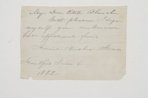 de son autographe : « Dear little Blanche With pleasure I sign myself your unknown but affectionnate friend Harriet Beecher Stowe ».Vente 11 juin 2007 (n° 140).