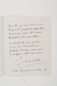 Sylva.Poème autographe signé « Elisabeth », à l’Athénée de Forcalquier, Sestri Ponente 13 avril 1883 ; 3 pages in-4 à son chiffre couronné.Belle pièce de six quatrains. « Une brise affectueuse Vint effleurer mon cœur, Une chanson amoureuse, Volant de fleur en fleur, […] À moi les Troubadours ! Entends-tu bien, ma mie ? Ce souffle c’est l’amour ! »Vente 20 juin 2005 (n° 160).