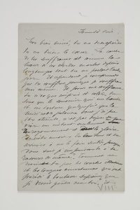 gris.Belle lettre d’amour passionnée à Anatole France, dans laquelle se retrouve l’inspiration du roman qu’Anatole France tira de leur liaison brûlante et tourmentée, Le Lys rouge (Calmann-Lévy 1894). [La lettre suit de peu des indiscrétions sur leur liaison colportées par Line de Nittis.]« Mon bien aimé, tu me désespères, tu me brises le cœur. La cause de tes souffrances est comme la lueur de ces étoiles mortes depuis longtemps dont tu me parlais l’autre jour. Et cependant je comprends que tu souffres, puisque je souffre moi-même. Et pour ma souffrance, tu n’as que mépris et colère, tu sens que le souvenir qui me hante et me torture quelquefois, que la misérable jalousie dont j’ai pu être atteinte, n’est pas digne de vivre un instant seulement en face du rayonnement et dans la gloire de notre amour. [...] Oh toi mon amour, toi mon beau rêve réalisé, ne souffre pas et ne me fais pas souffrir ! Mais rien au monde n’est resté debout, rien n’existe sous la face des cieux, rien que toi et moi. Le reste est apparence et illusion vaine. Et ce passé, ce passé dont tu fais ton supplice mon adoré, il n’est plus qu’en toi, je n’ai gardé aucune trace de ce qui fût, je ne vis qu’en toi et par toi, tu me caches l’univers. Mon âme n’est qu’un miroir qui reflète ton image. Ah ta lettre est cruelle, infiniment cruelle [...] Ah mon ami, mon unique ami, ne me donne pas le désespoir de ne pouvoir que te torturer. Désire moi, tu le peux, tu en as le droit, ne t’eussé-je appartenu qu’une heure, cette heure a tout noyé, tout effacé, elle s’est levée dans ma vie comme le soleil qui éteint toutes les lueurs »... Avant lui sa vie était vide : « il n’y avait qu’un besoin immense, qu’un désir fou, le désir de toi. De toi qui ne me connaissais pas, mais que je pressentais. Crois moi, crois moi, ce que je t’écris là c’est avec le plus profond de moi-même, c’est le cri de mon être qui va à toi. [...] je suis une malheureuse, j’empoisonne tout, je flétris tout autour de toi. Pardonne moi je t’en supplie. Et laisse moi espérer que tu voudras encore de moi quand je vais revenir dans bien peu de jours. Je le sais, je le sais, je suis sûre que nous serons encore follement heureux, mais que de souffrances endurées, quelle horrible absence ! »... Il semblerait que « l’affreuse Line », Mme Alexandre Dumas fils, et son fils Gaston aient bavardé, et que par des rumeurs, leur liaison ait été révélée. Elle s’inquiète de l’avenir et recommande à France de traiter son mari avec « beaucoup de patience et de douceur. [...] Tu as tant de tact et de souplesse et je serais si désolée que vos rapports ne fussent pas très bons. Il suffit d’un mot, d’une flatterie déguisée pour le mener par le bout du nez »...Publiée (incomplètement) par Jacques Suffel : Anatole France et Madame de Caillavet, Lettres intimes (1984, n° 52, p. 72).Ancienne collection Alfred Dupont (V, 3 juin 1977, n° 71).