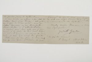 Judith GAUTIER (1846-1917) fille de Théophile Gautier, elle fut l’épouse de Catulle Mendès dont elle divorça ; elle écrivit de nombreux ouvrages (poèmes, romans et nouvelles, théâtre).Lettre autographe signée « Judith Gautier »,...
