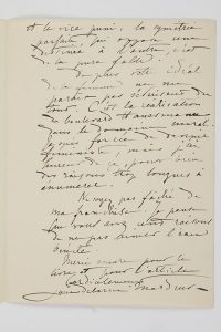le remercie pour l’envoi de son livre dédicacé Le Compagnon et ses compliments sur Le Pain blanc : « Votre roman, commencé dans les bas-fonds, finit heureusement en coup de soleil bien sain, bien tonique. Pardonnez-moi. Je lui reproche son ton bondieusard à rebours, car la vie n’est pas comme ça. La vertu récompensée et le vice puni, la symétrie parfaite, qui oppose une destinée à l’autre, c’est de la pure fable. De plus votre idéal de la femme ne me paraît pas séduisant du tout. C’est la réalisation du boulevard Haussmann dans le domaine moral. Je suis forcée de devenir féministe, mais j’ai horreur de ça, pour bien des raisons trop longues à énumérer »... 19 juillet. Elle vient de lire Le Peuple : « C’est un beau rêve que je souhaite à l’avenir de réaliser – sans y croire. Pardonnez-moi. L’épisode des trains arrêtés par les femmes est très beau. Vous avez fait une fresque lyrique avec des matériaux modernes, qui semblent y prêter si peu. Je continue à vous reprocher de mettre les bons d’un côté, les premiers déguisés en grotesques et les autres, en anges. L’humanité tout entière est caricaturale et angélique à la fois. Le hachis est autrement homogène que vous ne le pensez – ou rêvez. Mais je sais qu’il faut toujours miser plus haut que le but pour l’atteindre et que tous les prophètes ont exagéré pour obtenir le minimum, y compris le Christ avec son Aimez-vous les uns les autres… qui dépasse tout comme utopie. Supportez-vous les uns les autres… était déjà trop fort pour la férocité humaine »…
