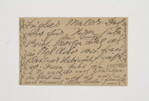 Palestine) ; en allemand.Elle le remercie pour son aimable lettre. Elle doit rencontrer après demain dimanche « Mme Klausner Habinâah » à Tel-Aviv. Après cela, « je serai encore pour deux jours à Jérusalem, d’où je vous tiendrai encore informé »… [Elle s’était installée en Israël en 1937.]Vente 1er-2 avril 2004 (n° 225).